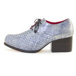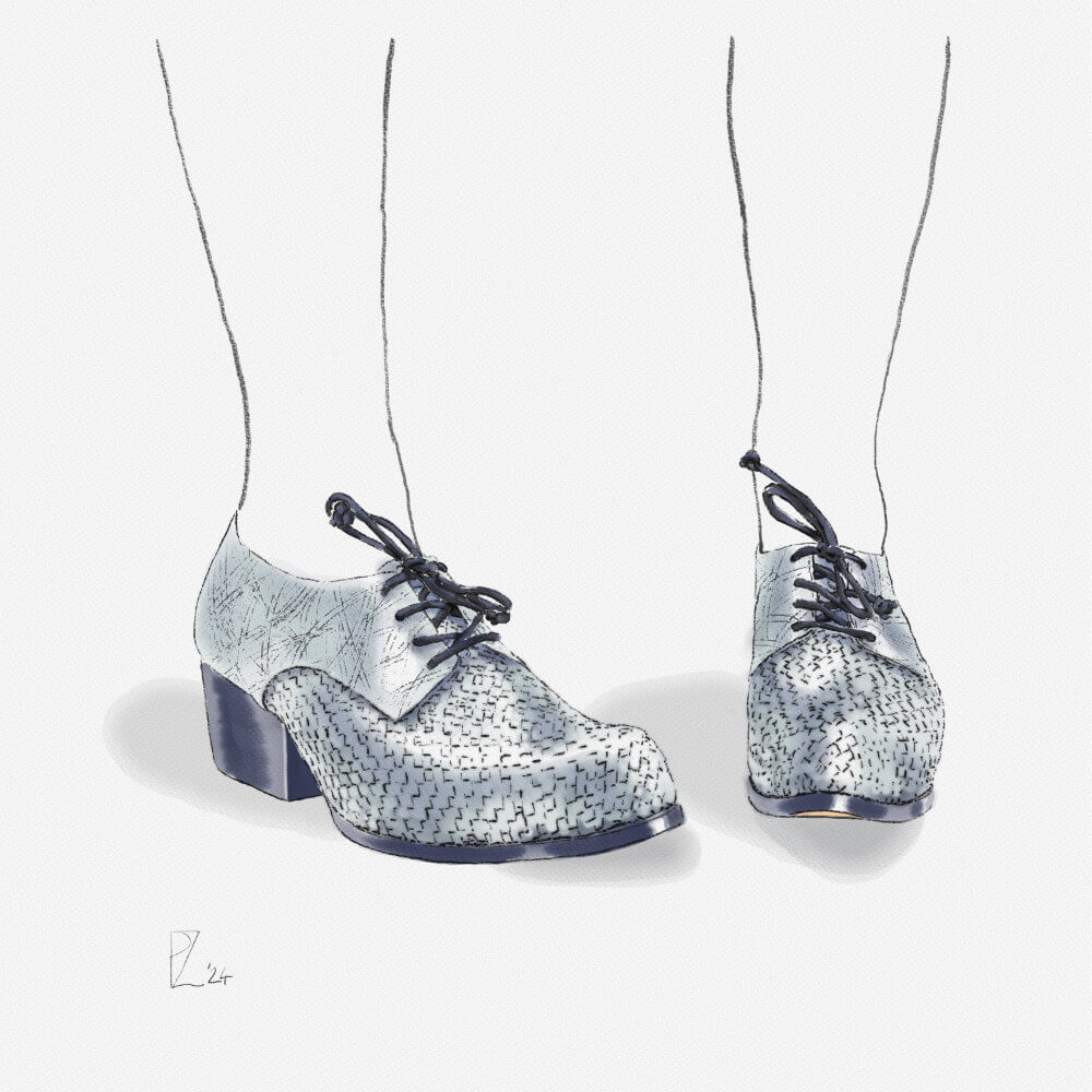 Pairing this stunning shape with a lace-up upper ensures not only a superb fit but also a touch of practicality. What truly sets this style apart is the sumptuously hand-woven leather vamp, adding an element of artistry and luxury to the design.