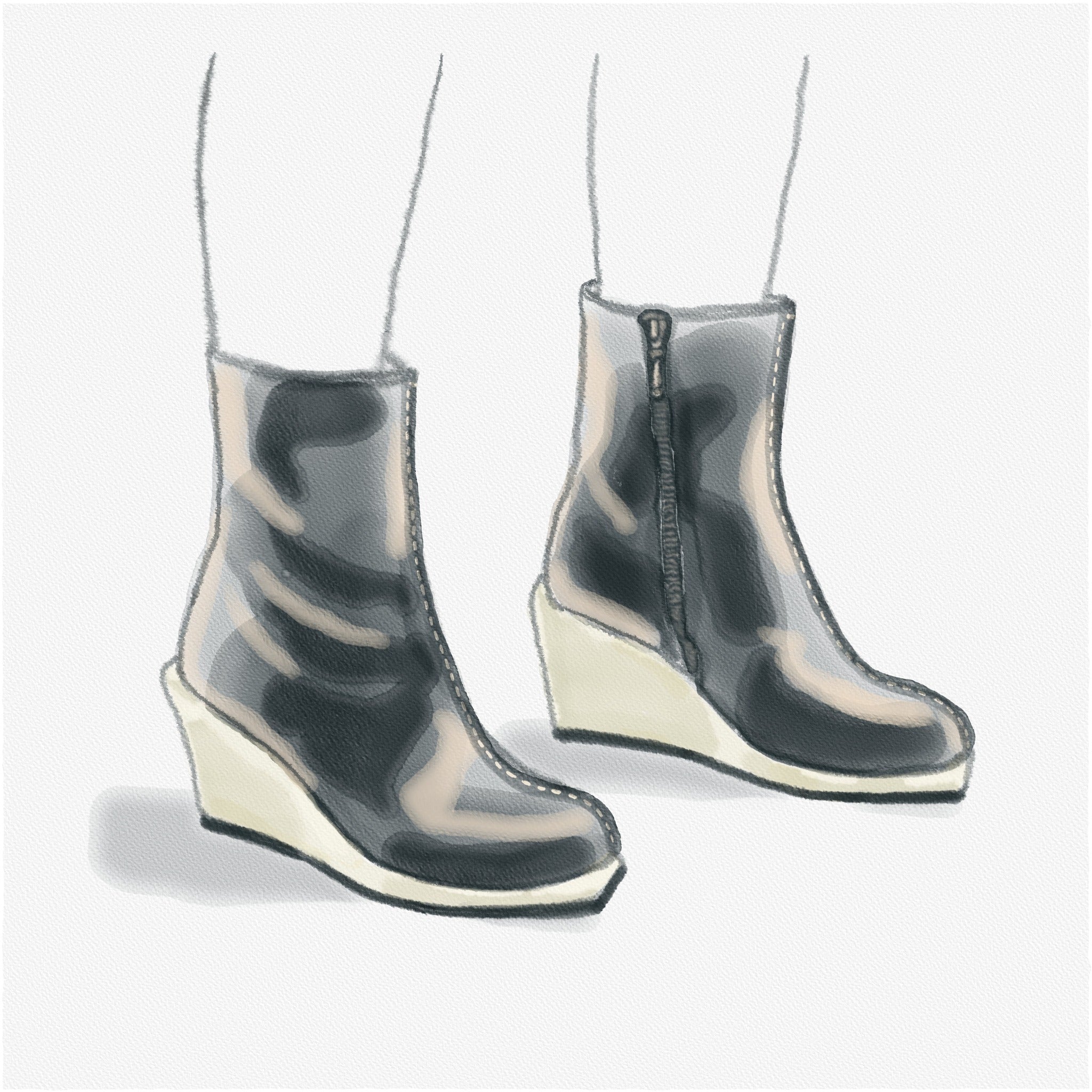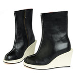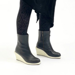 The Amstel boot is a perfect fit with this movement - with it's simple overall form, the bold geometry of the wedge component - it definitely has an architectural feel to it. Note the beautiful hand folded and stitched front seam.