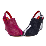 Preston Zly shoes are made entirely by hand by our small team of master craftsmen in Bali. Some components are hand made by us in Melbourne and shipped to Bali for attachment to the shoes - these include but are not limited to: Coloured wedge and tread components (Trampa styles for example) and 3d printed heels which are made and attached in Melbourne.