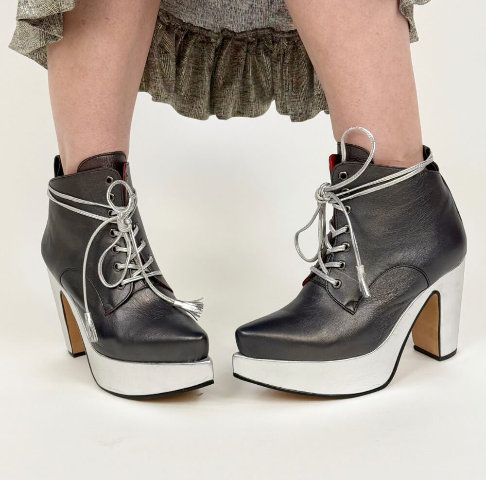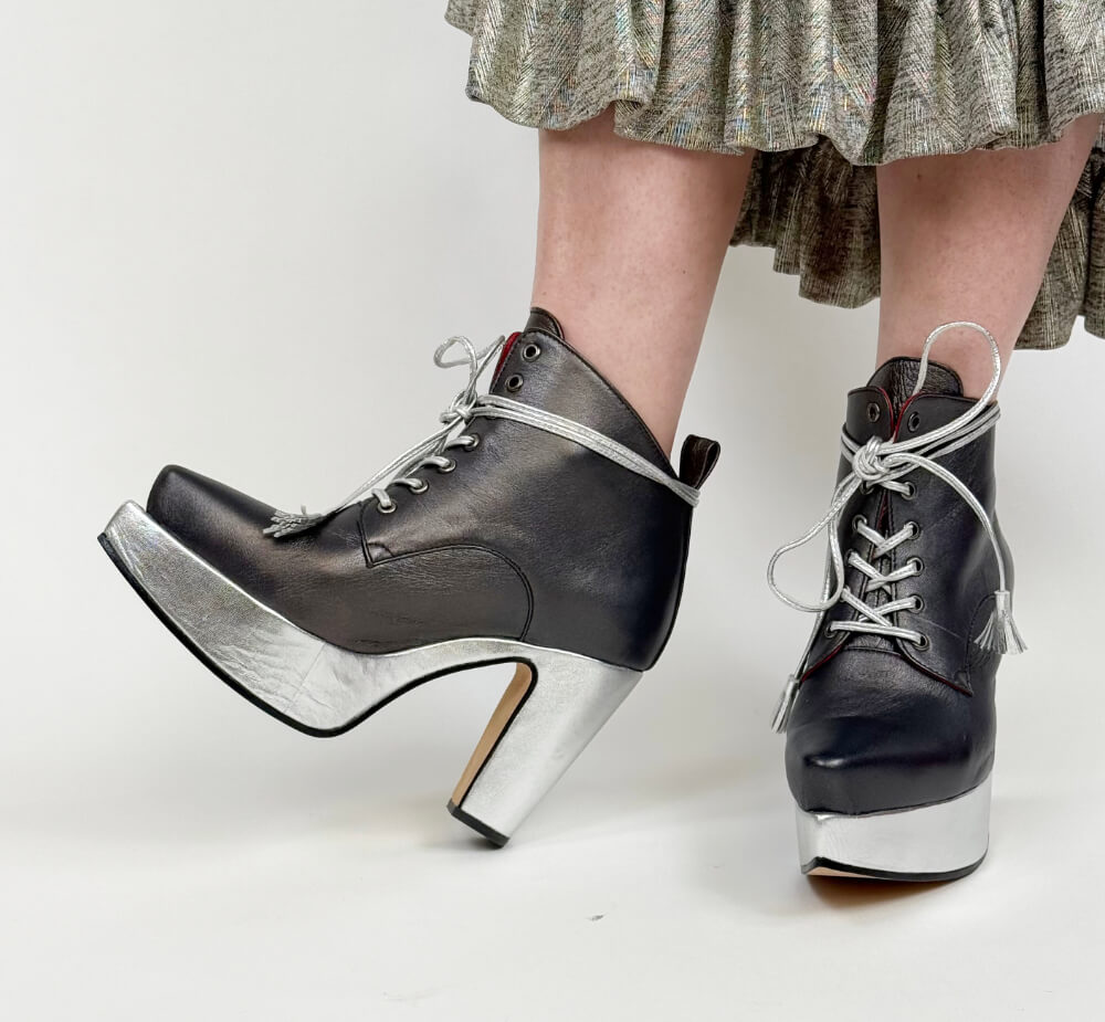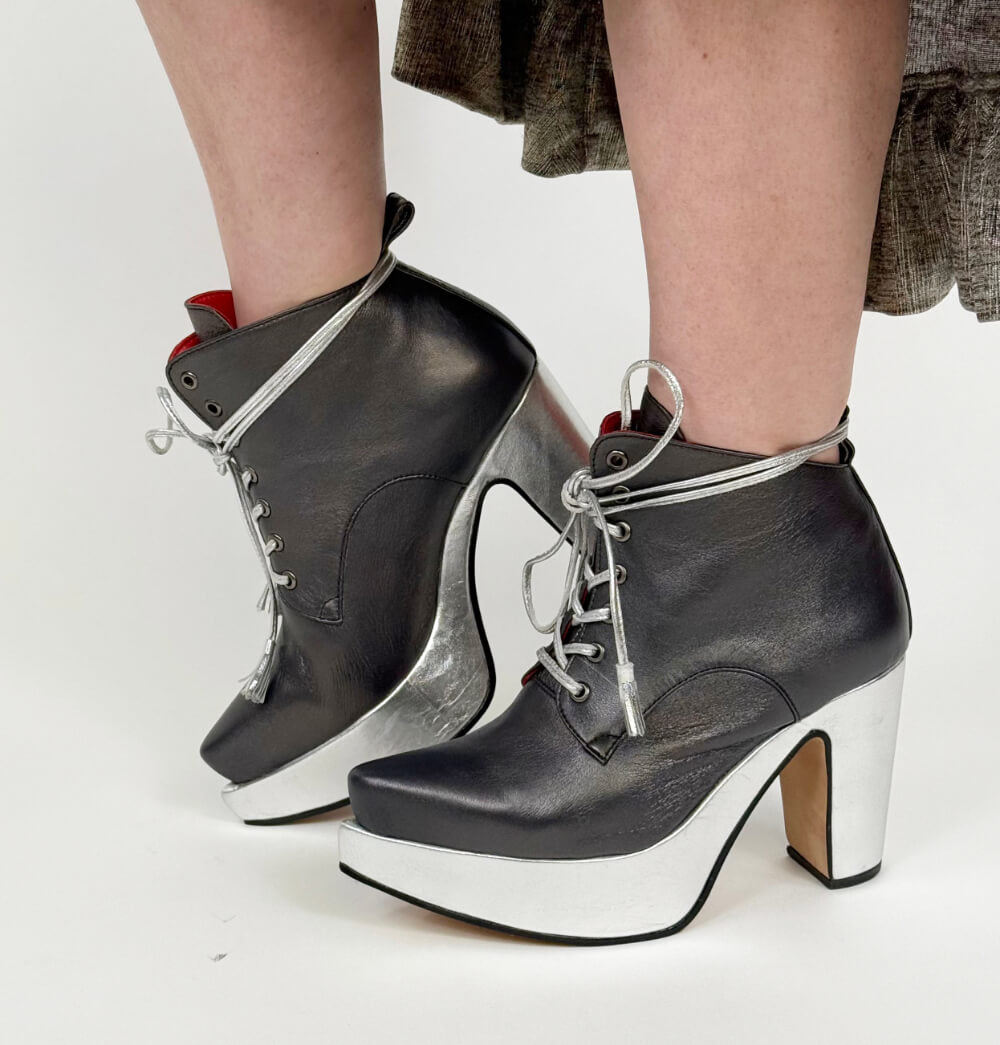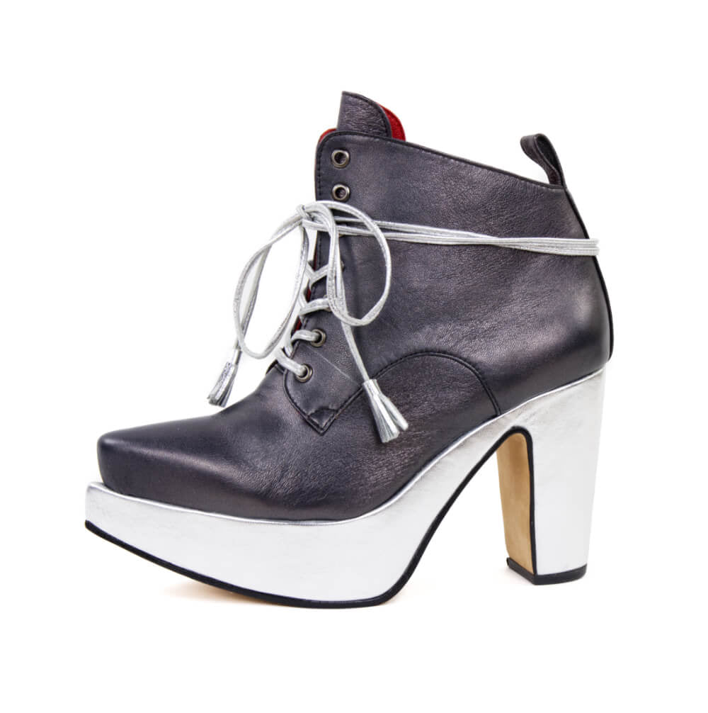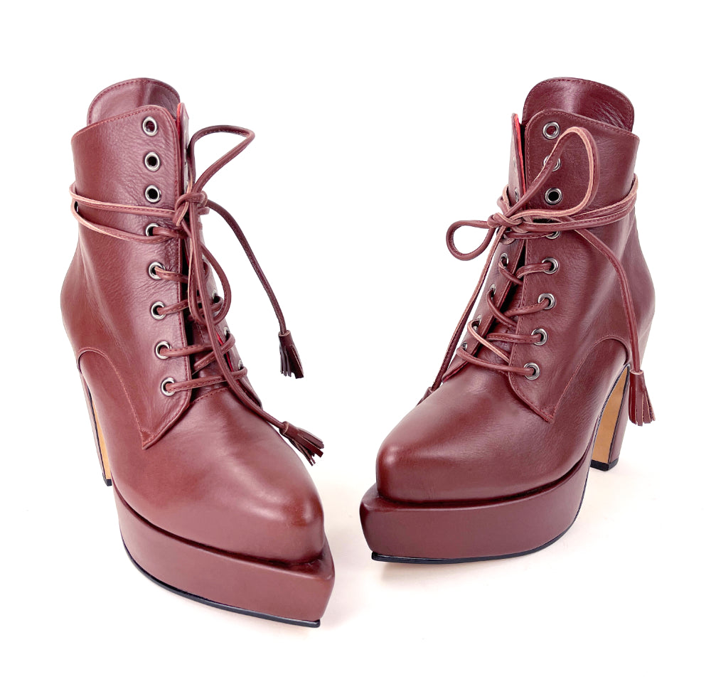 A sharply pointed lace-up ankle boot with attitude. Built for impact, not approval.