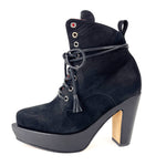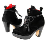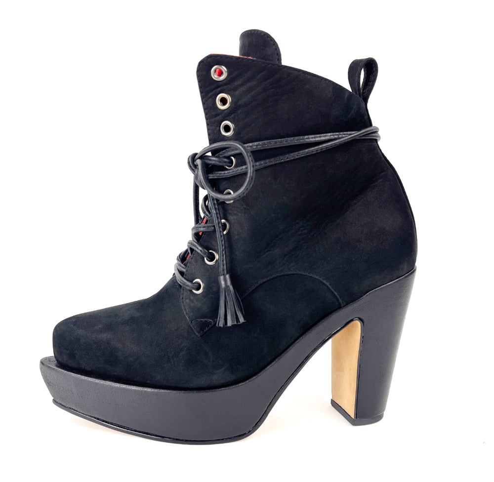 The heel height of the bootie including the 4cm platform under the ball of the foot is 10cm