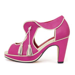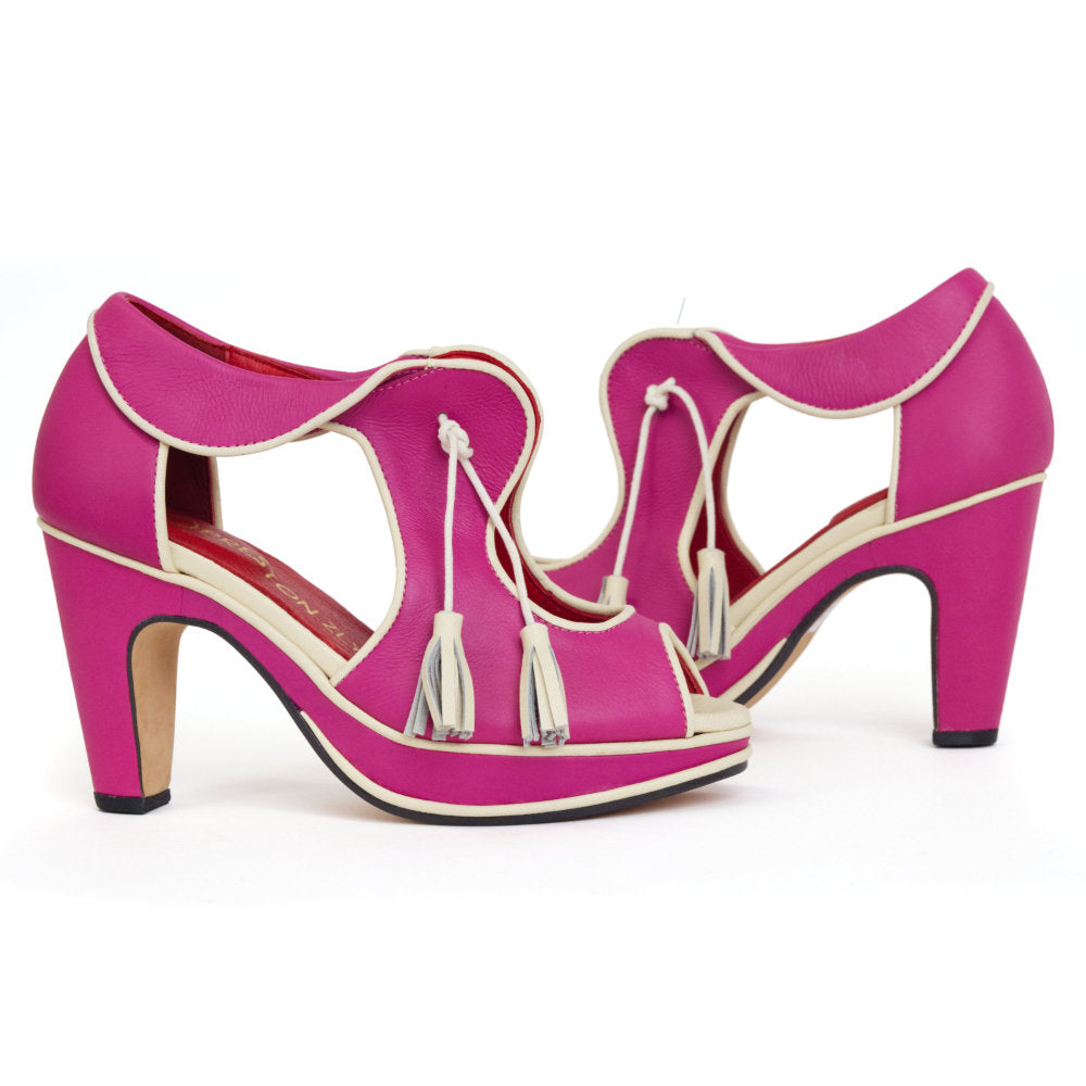 Edith effortlessly encapsulates iconic Preston Zly design language, boasting striking colour contrasts, the allure of finely crafted French binding, and an adjustable tie that guarantees a flawless fit. With sculptural elements and cute tassels in tow, she exudes an air of opulent sophistication. And, of course, she graces your feet with a sumptuously comfortable medium heel, accentuated by a modest platform, granting you an extra dose of elevation and glamour, all while cradling your every step in pure comfort.