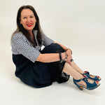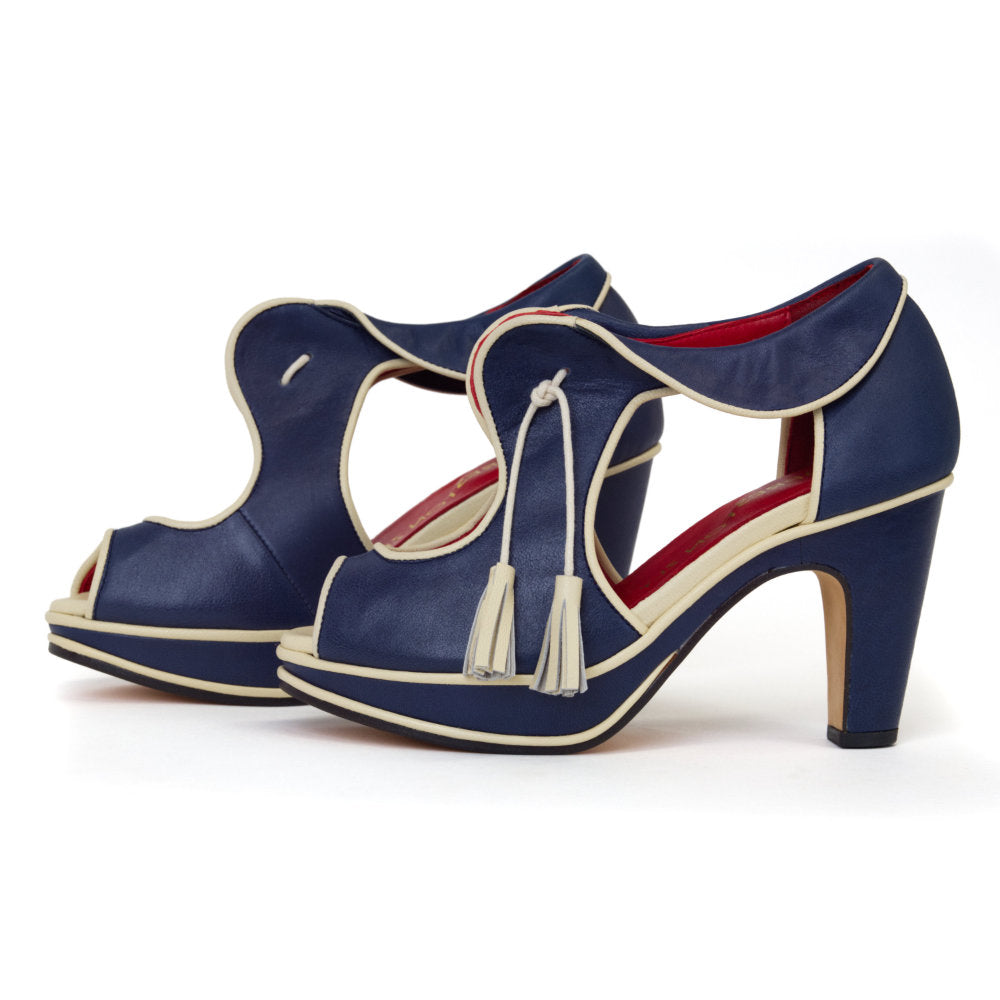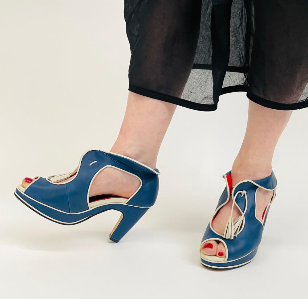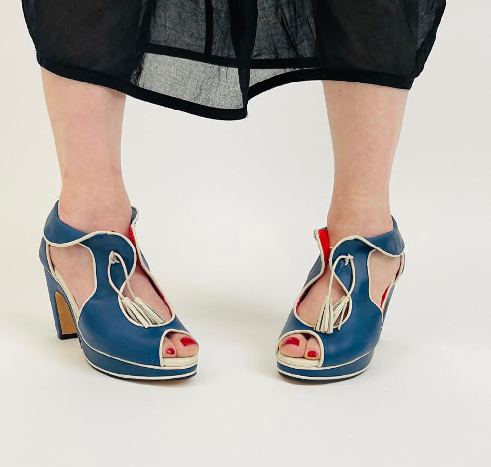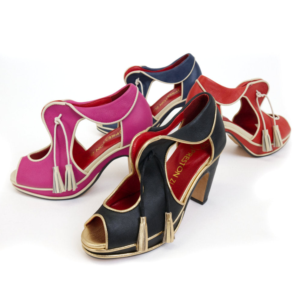 Edith effortlessly encapsulates iconic Preston Zly design language, boasting striking colour contrasts, the allure of finely crafted French binding, and an adjustable tie that guarantees a flawless fit. With sculptural elements and cute tassels in tow, she exudes an air of opulent sophistication. And, of course, she graces your feet with a sumptuously comfortable medium heel, accentuated by a modest platform, granting you an extra dose of elevation and glamour, all while cradling your every step in pure comfort.