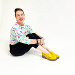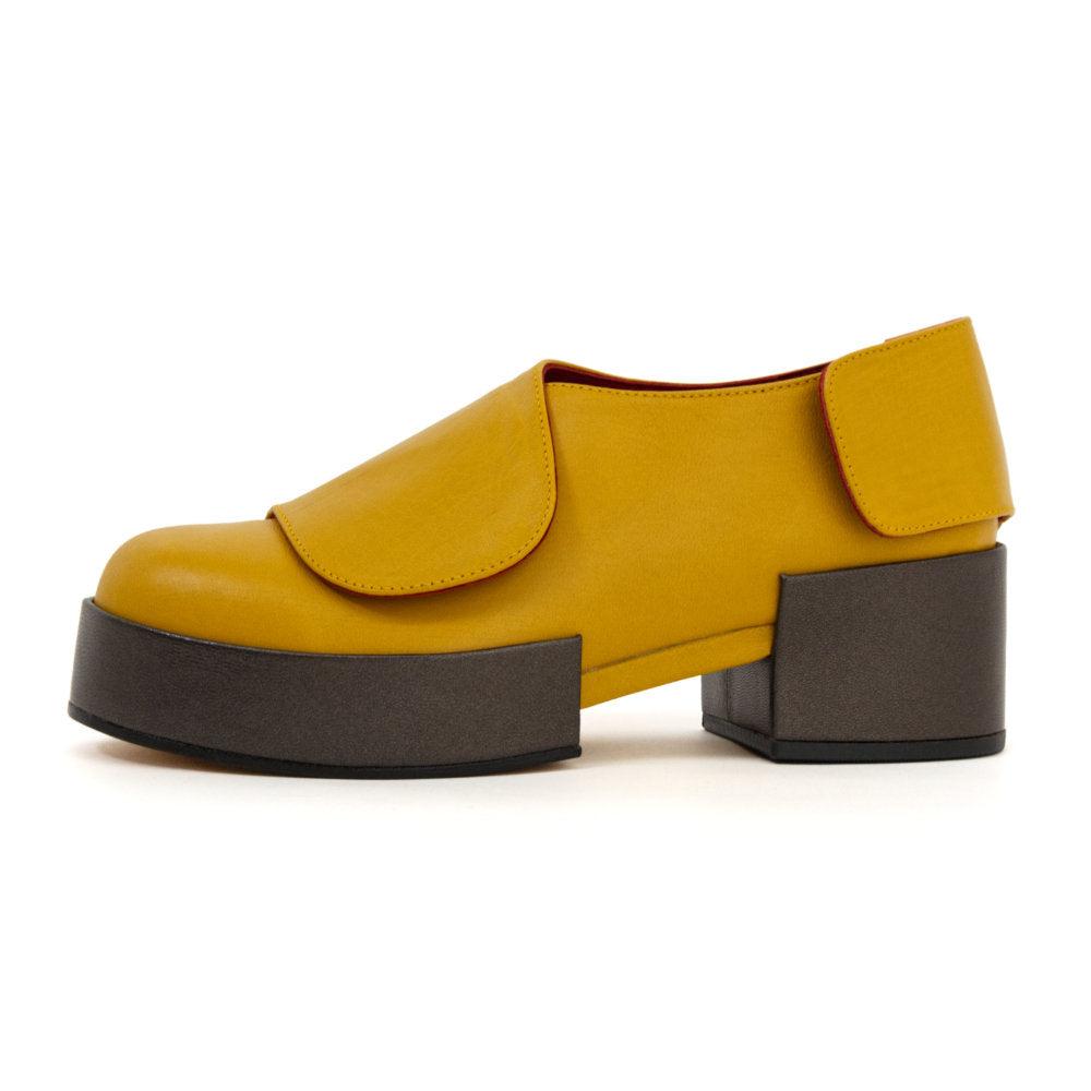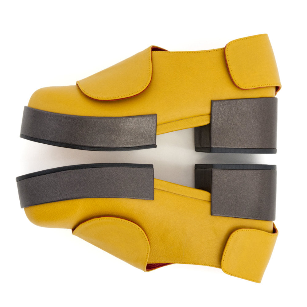 Named after Eleanor Roosevelt, former First Lady and a powerful human rights activist, this style is super edgy, super comfy and super wearable - with easily adjustable ankle and front straps meaning they will work whether you have a narrow or wide foot - we couldn't resist sampling her in amazing bright yellow leather with the heel and platform in a contrasting metallic. So perfect for the edgy clothes we know you all love to wear, but equally at home with something casual.