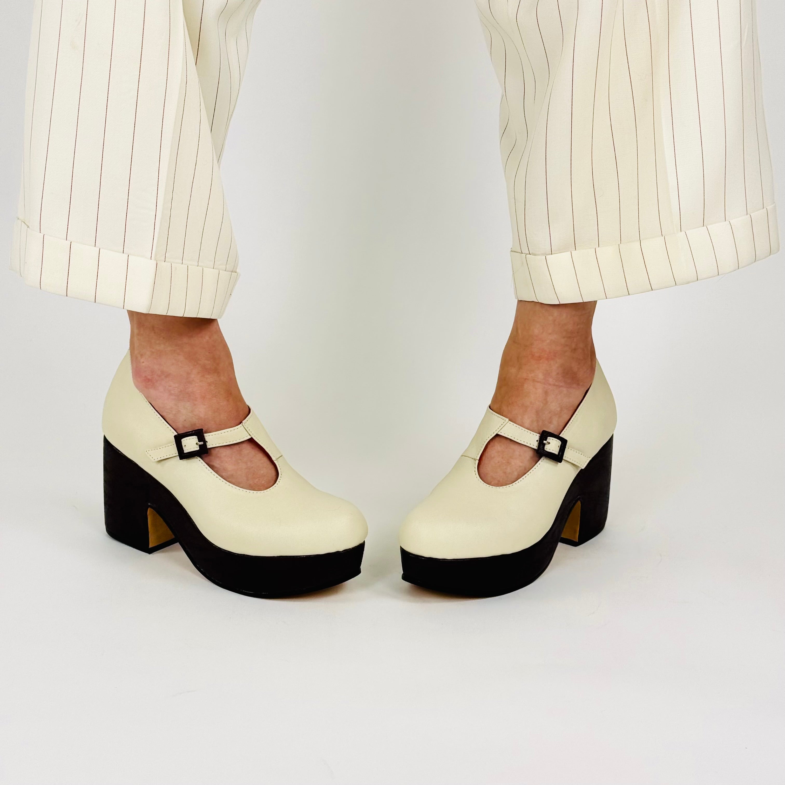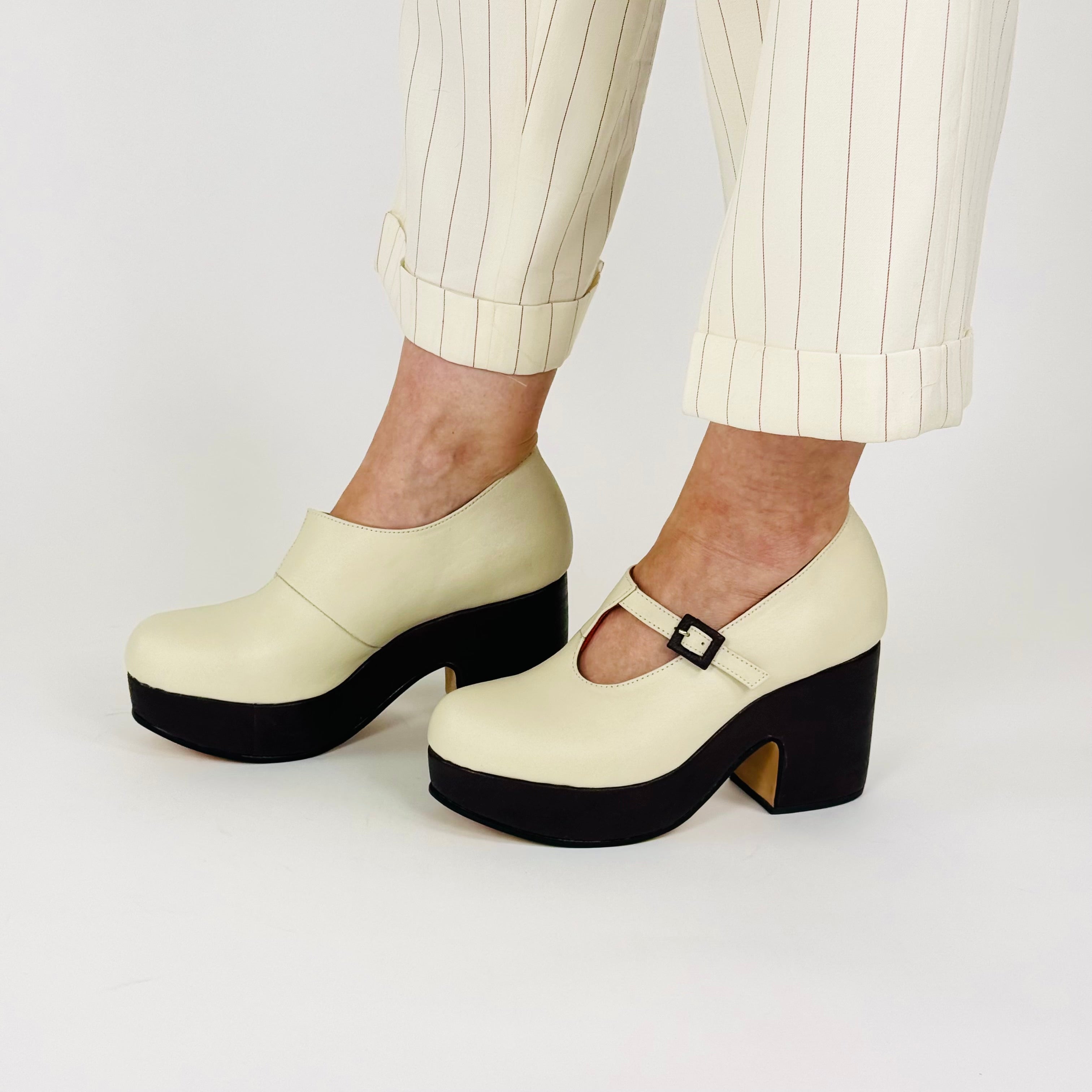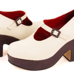 • Ivory with Oxblood Platform - The original sample and the perfect contradiction. Softness meets strength, light meets dark. The kind of combination that feels both classic and rebellious.