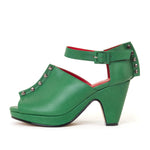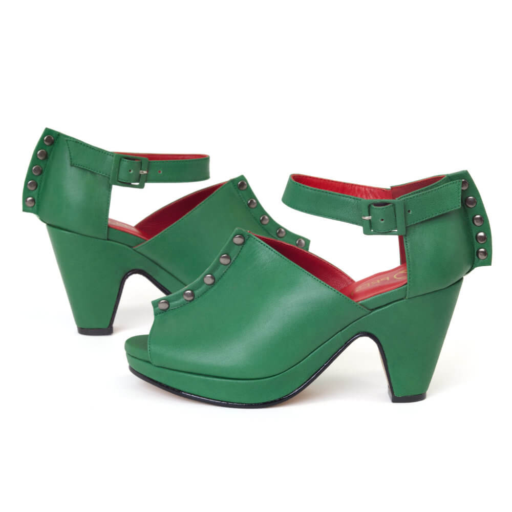 Riffing on the 40s dance hall craze, our Hannie has pizzazz to spare. The sleek, curvaceous lines of this shoe are set against the bold riveting detail.