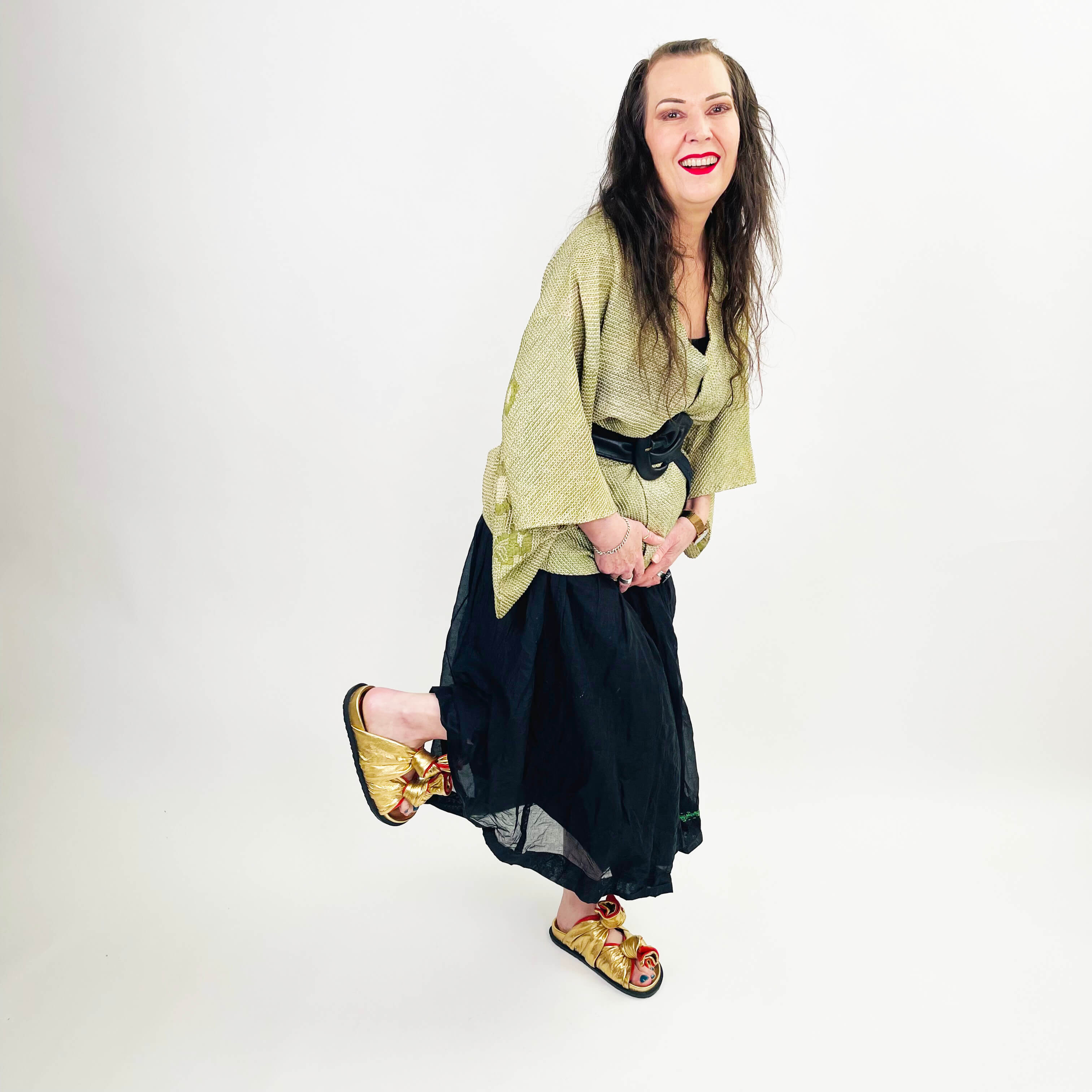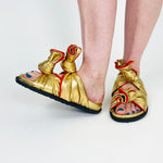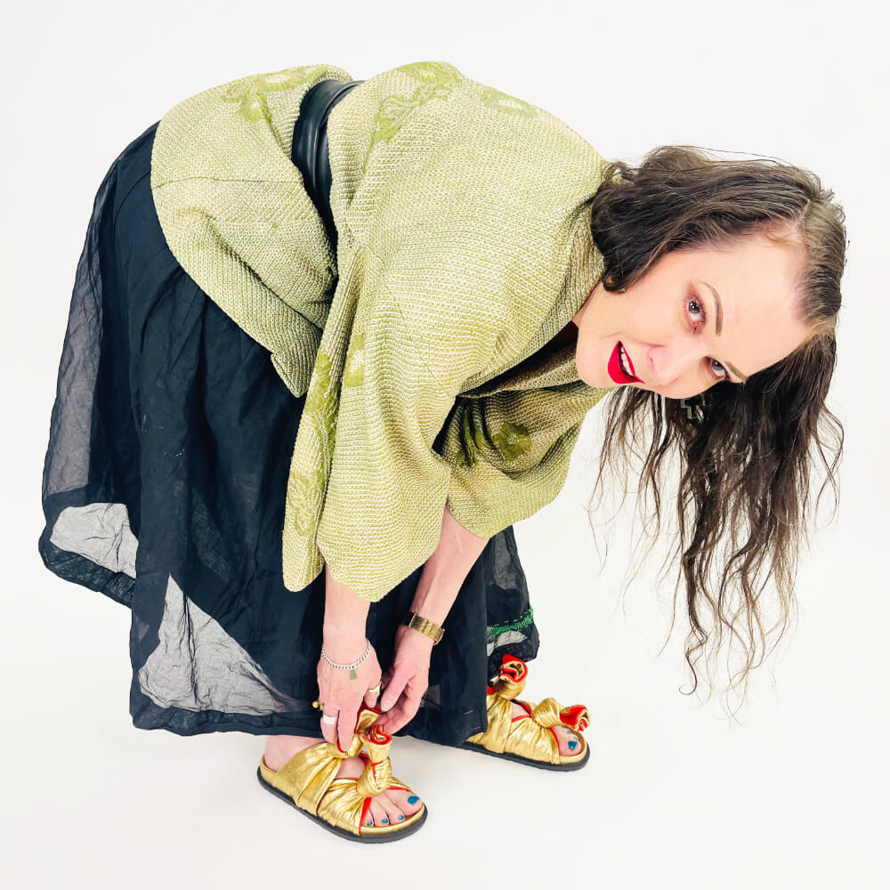 Last summer I was blobbing around and I couldn't be bothered putting on shoes that had any kind of heel or needed doing up in any way - and I realised that I hadn't designed anything like this for a very long time. I ended up borrowing some horrible plastic slides that one of my daughters had picked up in an op shop - they weren't even a matching pair.
