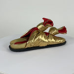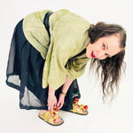 The big leather knots that hold you snuggly into the foot bed are what really give this style its edge - and it works. Kind of Japanese, really out there and , while over the top, somehow perfect for a super minimalist wardrobe. You can rock these anywhere from the low key to the wonderfully dressy, these are resort sandals on steroids!