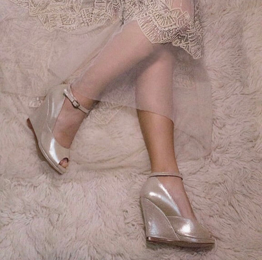Our heels are all wedges – sculpted so that the shoe looks fine and elegant, yet sturdy enough to see you through a long day without sinking into the grass or feeling desperate to change shoes the minute you have the opportunity.