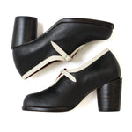 Beautiful fit and incredible stability thanks to the cylindrical heel (which juts out ever so slightly and sharply at the back of the shoe) only add to the perfection of the simple contrast trim detail.