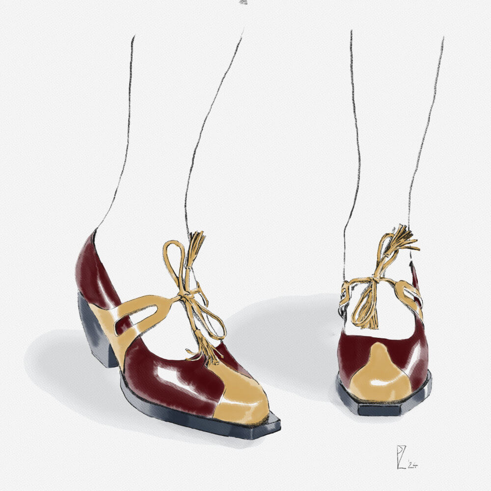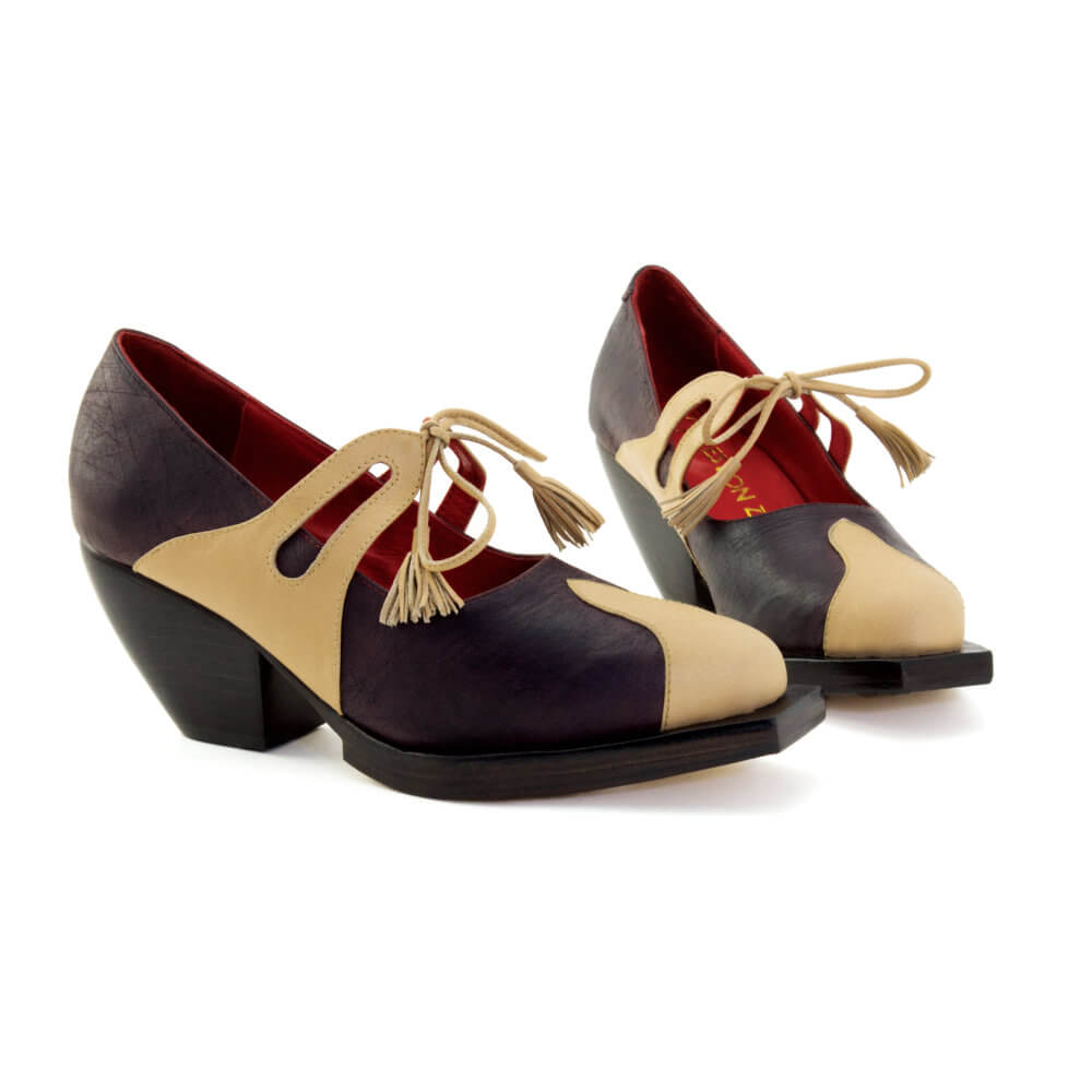At the forefront of innovation, we've seamlessly integrated our remarkable chunky stitched sole to the shoe's front, fashioning a distinctive square finish. This bold design choice harmoniously contrasts with the almond toe shape of the last, all complemented by our signature organically curved Cuban style heel for that extra touch of flair. These unique features redefine the traditional pump, instilling a sense of strength and purpose.