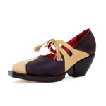 Crafted from a stunning leather combination of cobalt and deep ocean green, our Ruth boasts an art deco-inspired toe detail and a tassel tie, offering a flexibility in fit rarely found in traditional court shoes. It's a testament to our commitment to marrying style with comfort.
