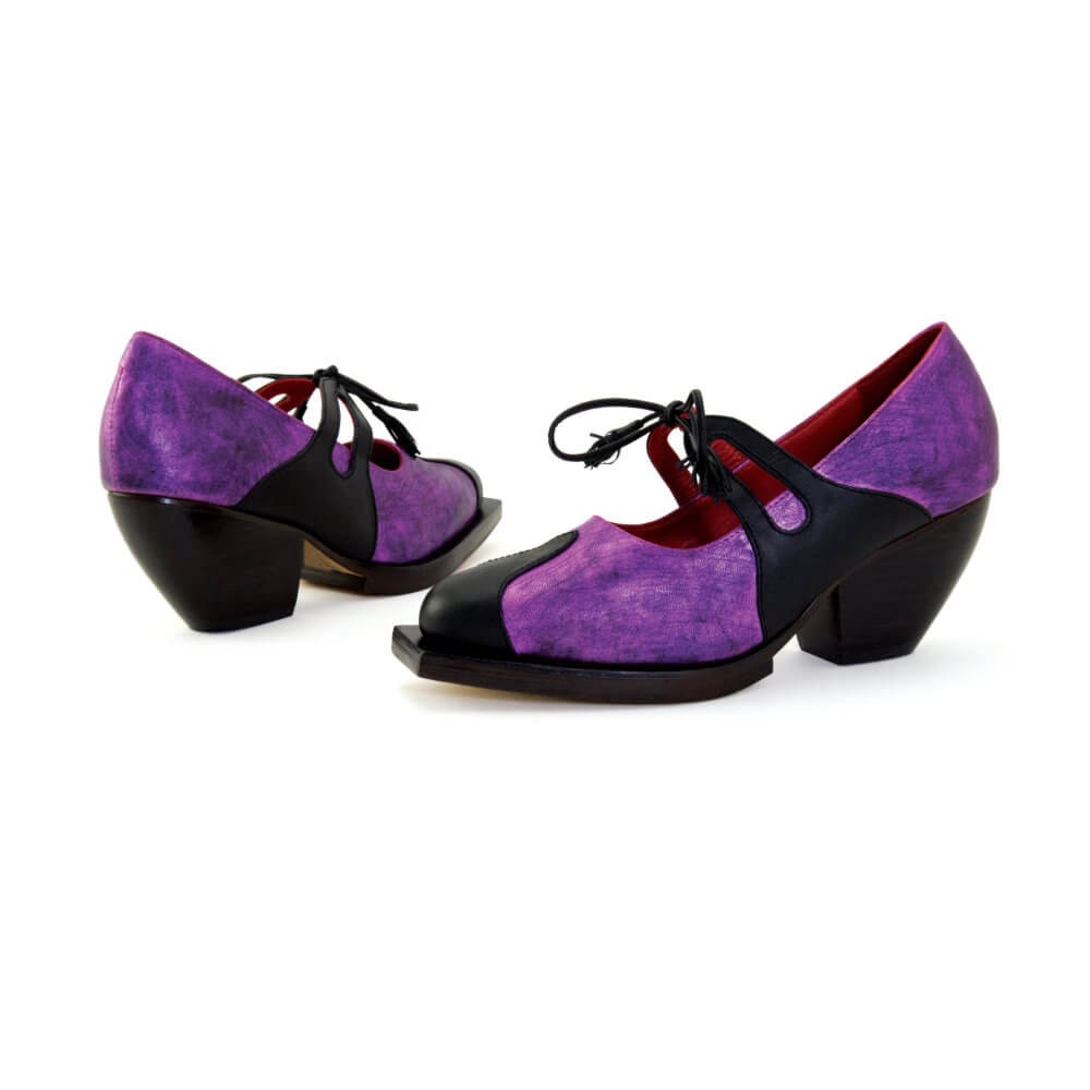 At the forefront of innovation, we've seamlessly integrated our remarkable chunky stitched sole to the shoe's front, fashioning a distinctive square finish. This bold design choice harmoniously contrasts with the almond toe shape of the last, all complemented by our signature organically curved Cuban style heel for that extra touch of flair. These unique features redefine the traditional pump, instilling a sense of strength and purpose.