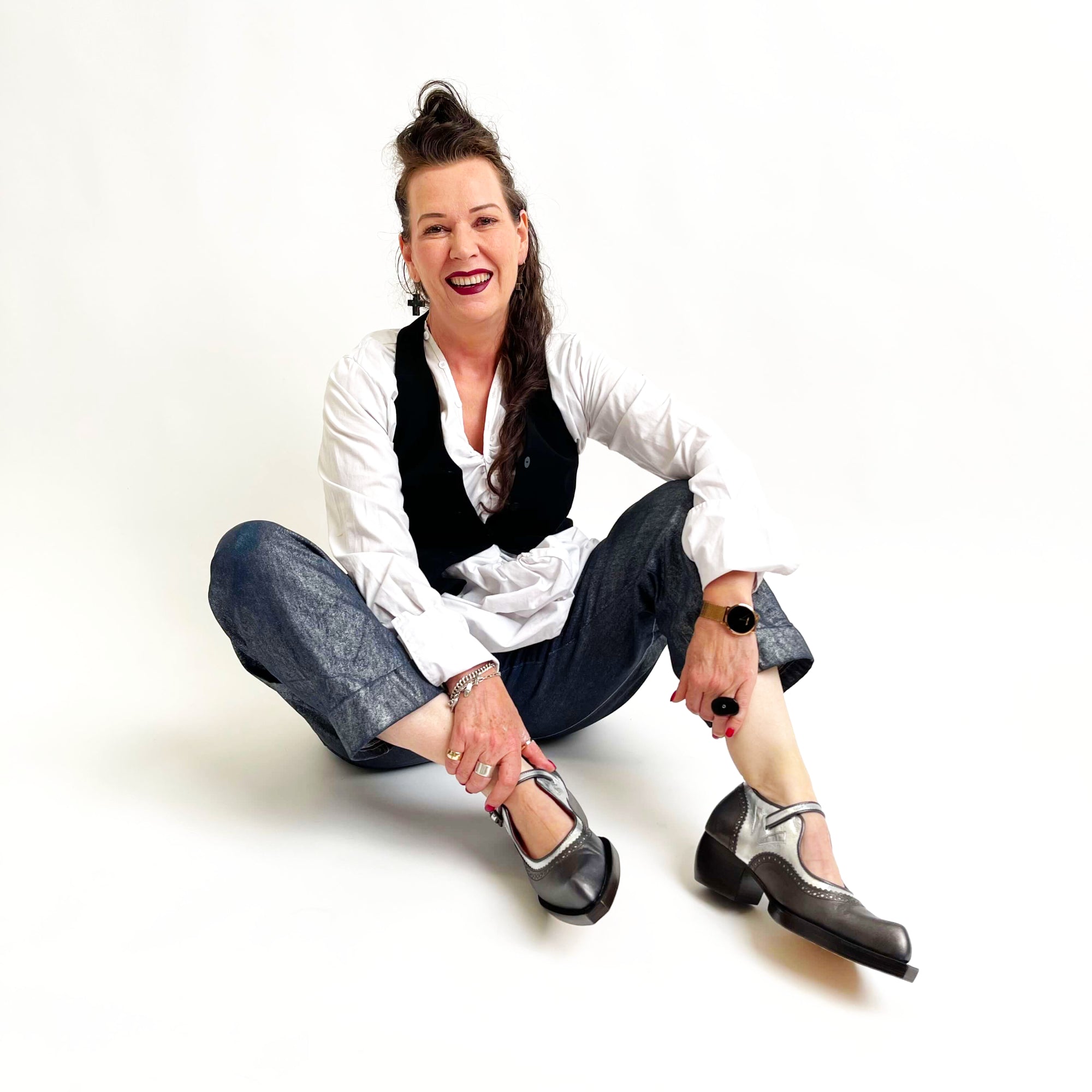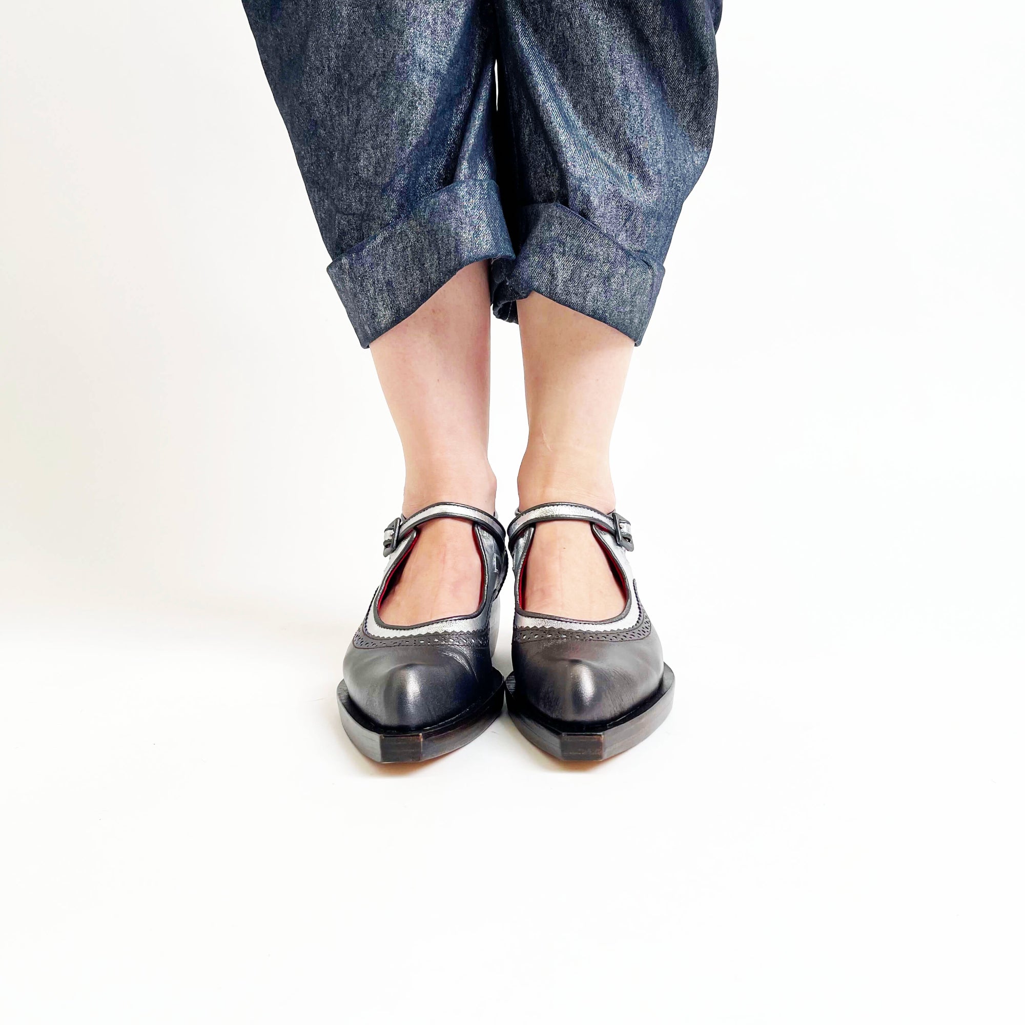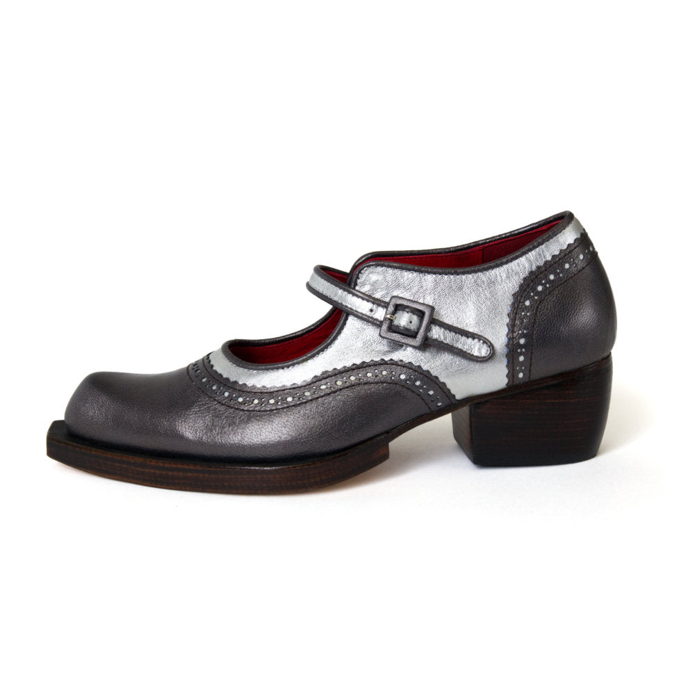 The comfort and style of our fabulous flat Avignon last with the brogue punching and edgy robust sole and heel of Virginia. The collision of these two styles has resulted in the perfect shoe!