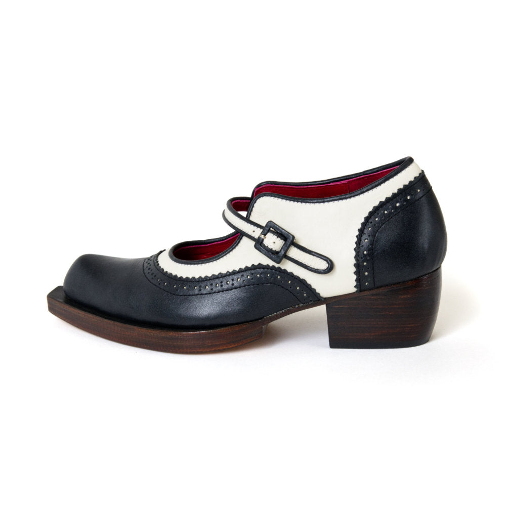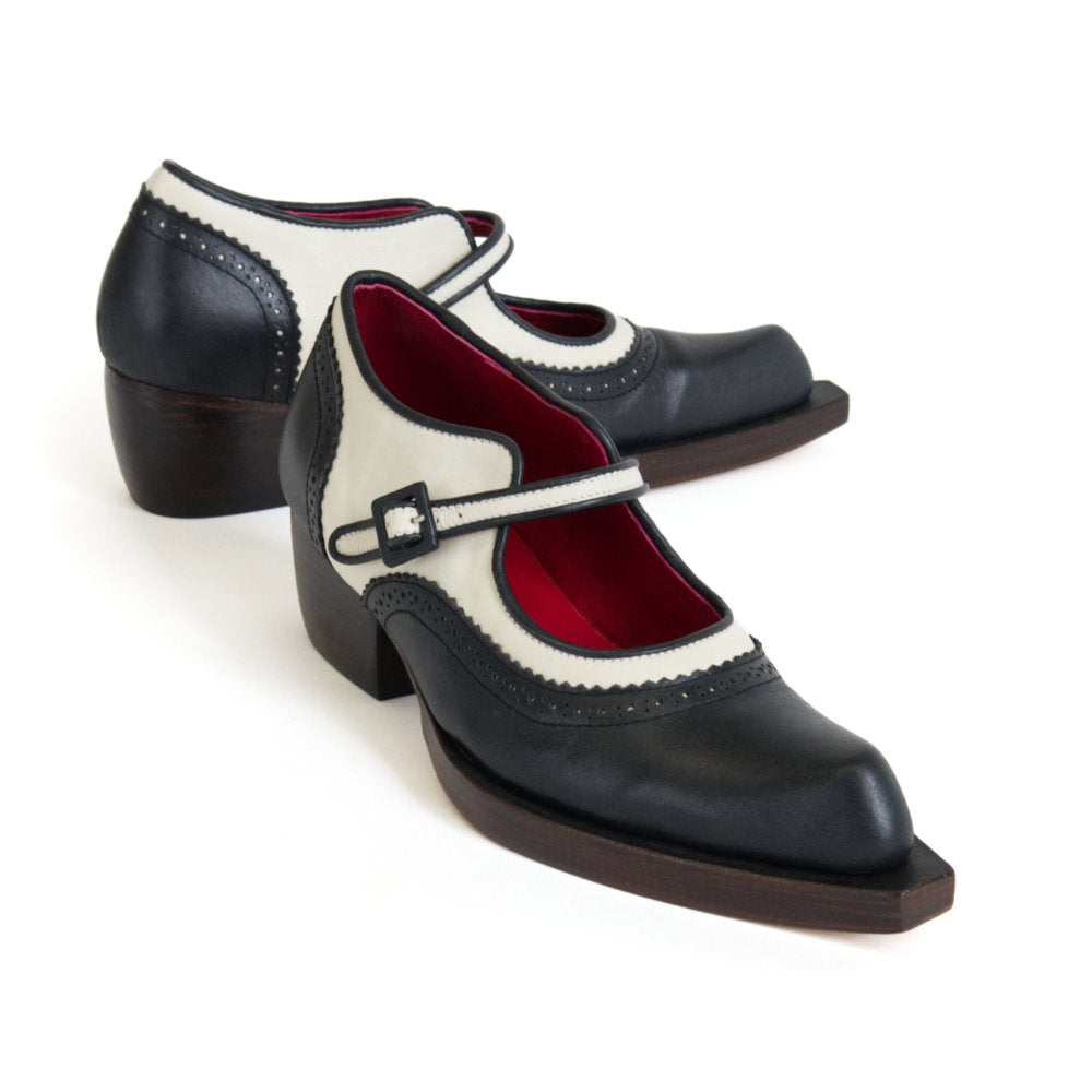 The 1930's inspired chunky leather sole gives you some extra height while making it possible for us to design in more definition to the characteristic heel. We've added beautifully refined French piping to the topline for extra colour contrast - and of course, the brogued, contrasting leathers bring a whole new feel to what is, of course, a classic shoe.