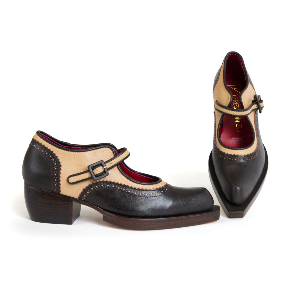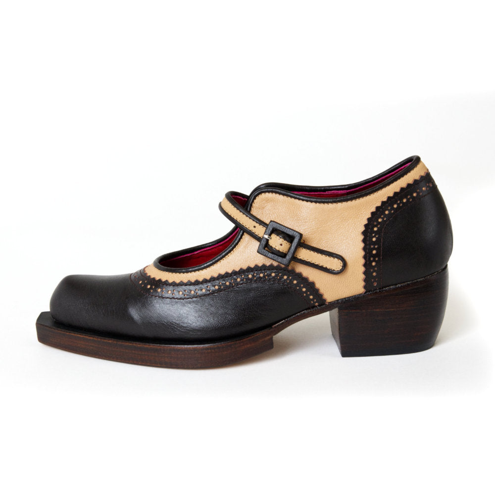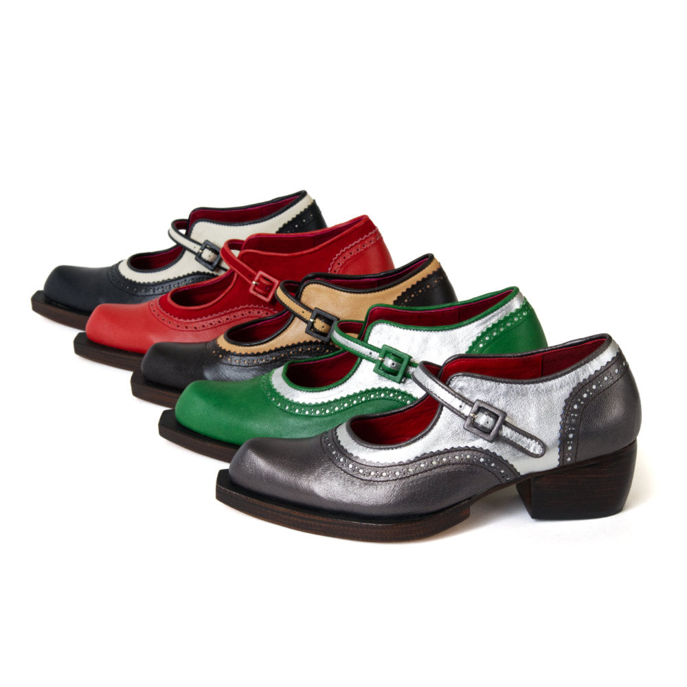 The comfort and style of our fabulous flat Avignon last with the brogue punching and edgy robust sole and heel of Virginia. The collision of these two styles has resulted in the perfect shoe!