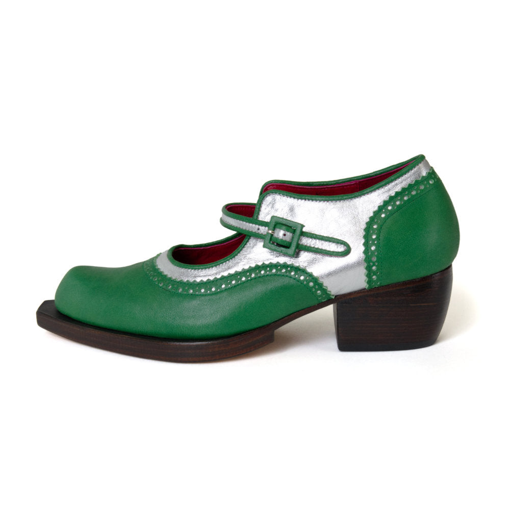 The comfort and style of our fabulous flat Avignon last with the brogue punching and edgy robust sole and heel of Virginia. The collision of these two styles has resulted in the perfect shoe!