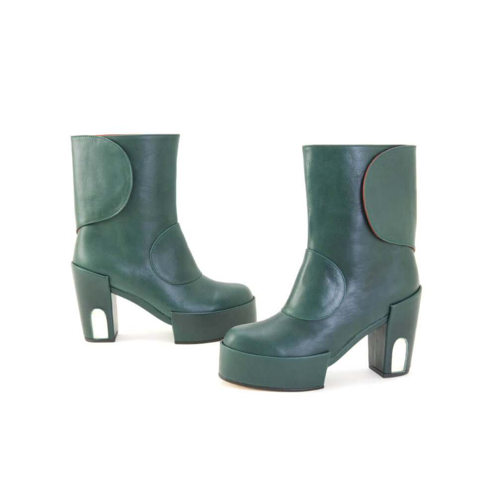 Crafted on our beloved Babi last, renowned for its timeless round toed silhouette, we've incorporated our signature sole and heel treatment. This intricate detailing sees the platform and heel edging up to envelop the shoe, imparting an architectural element to this remarkable boot.