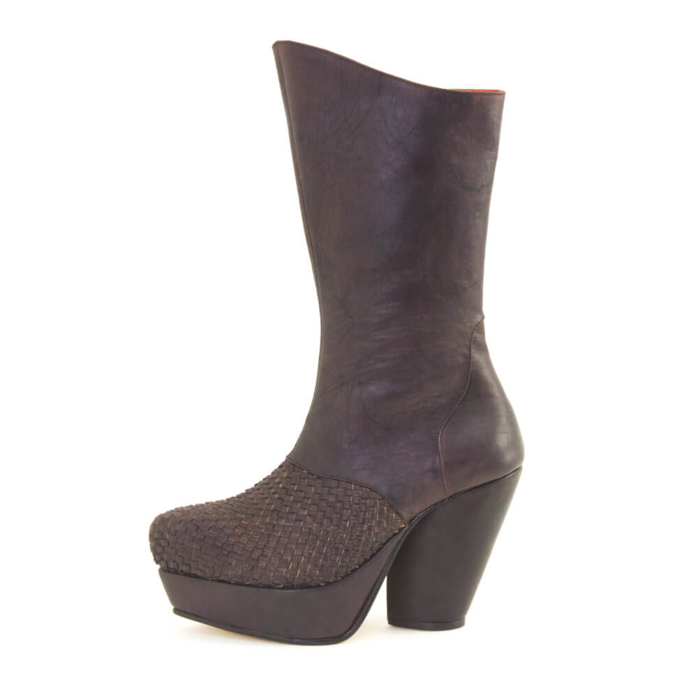 We started by obsessing over that amazing hand woven leather detail on the toe – I mean, it's just too good to pass up. And of course, we had to keep that edgy vibe with the high pointed platform and Cuban-style heel intact.